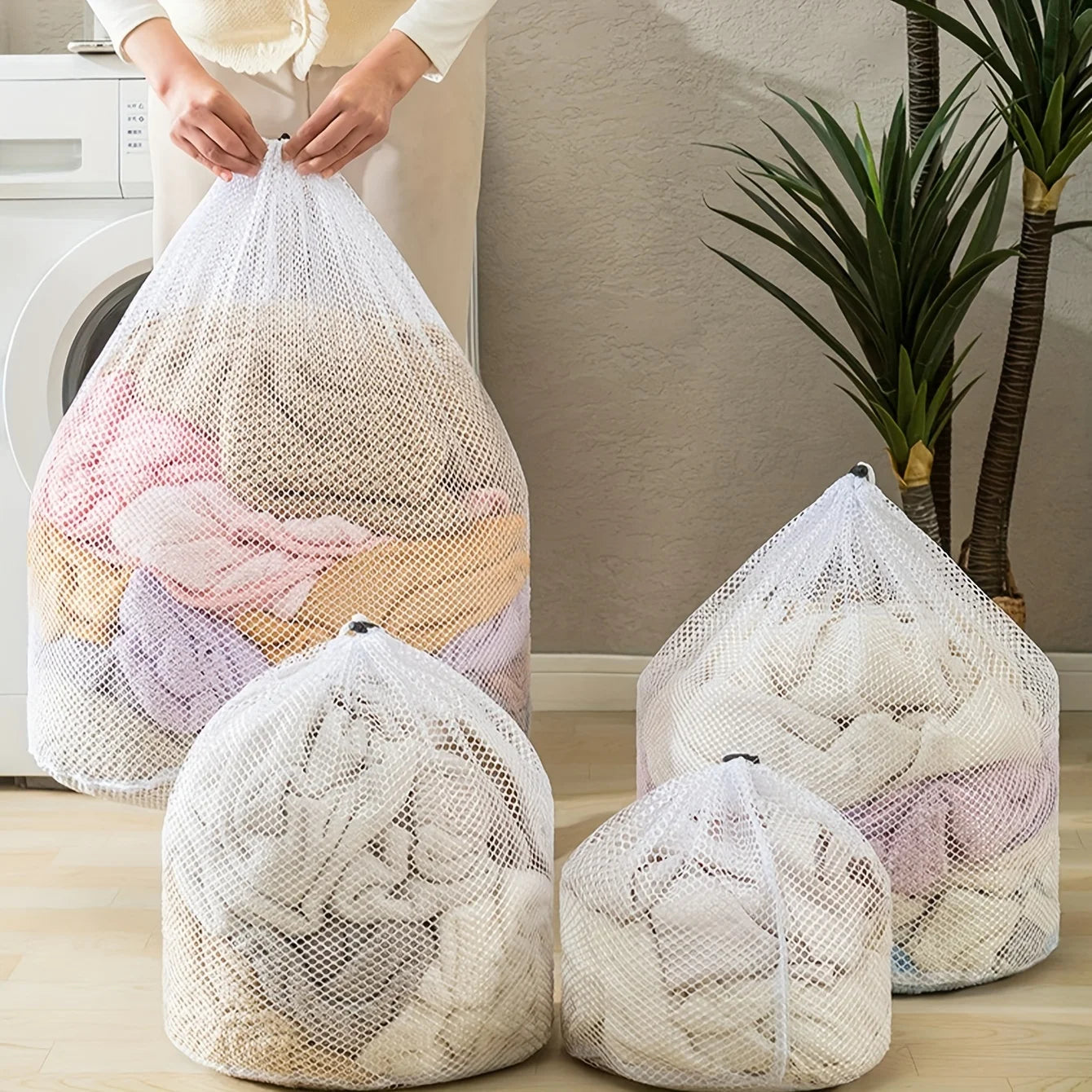 1pc/3pcs Drawstring Laundry Bag Coarse Net Washing Bags Dirty Clothes Organizer Pouch 4Pcs Set Laundry Bag For Washing Machine H