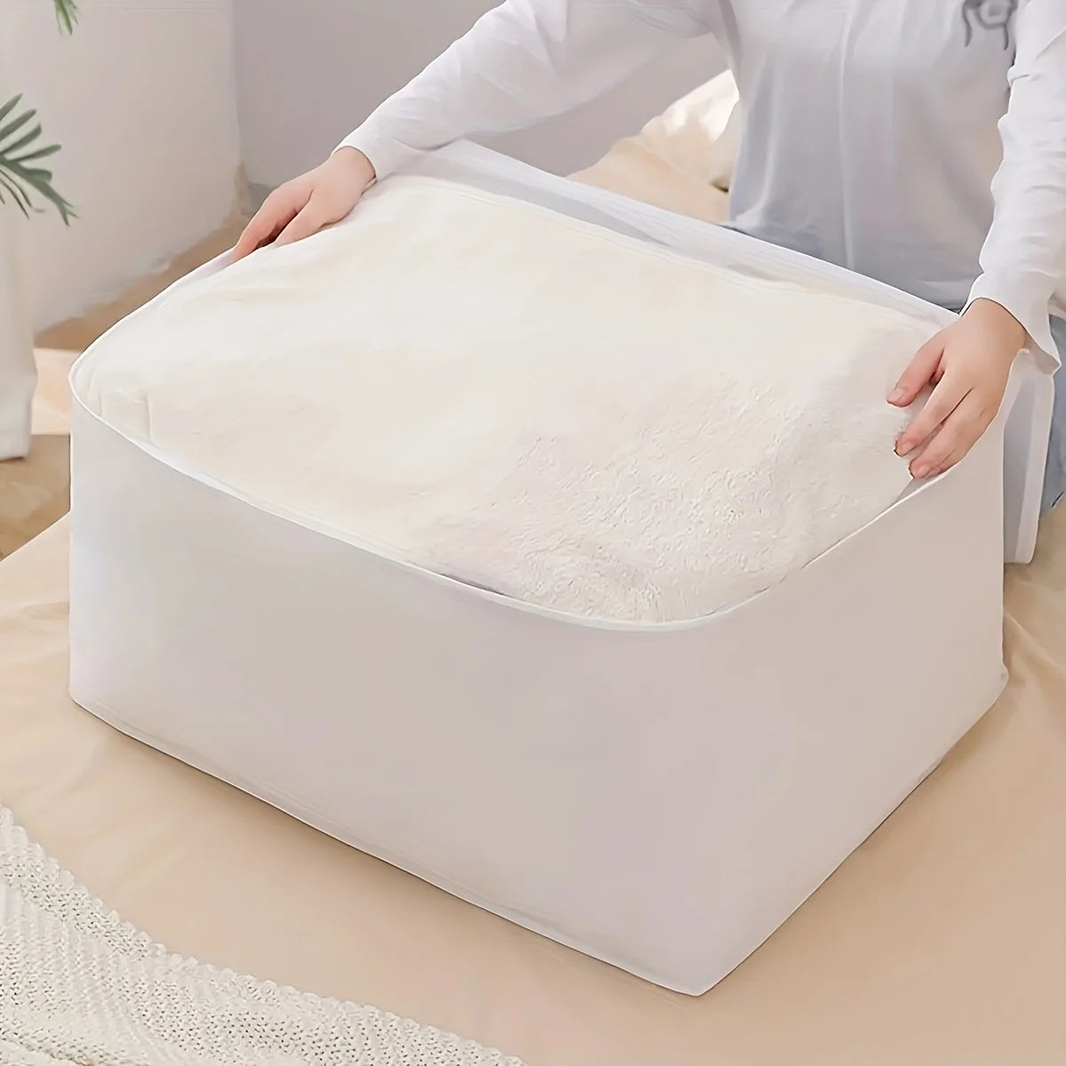 1pc-Large storage bag with zippered lid, bedding storage container, clothes, pants storage, sturdy zipper
