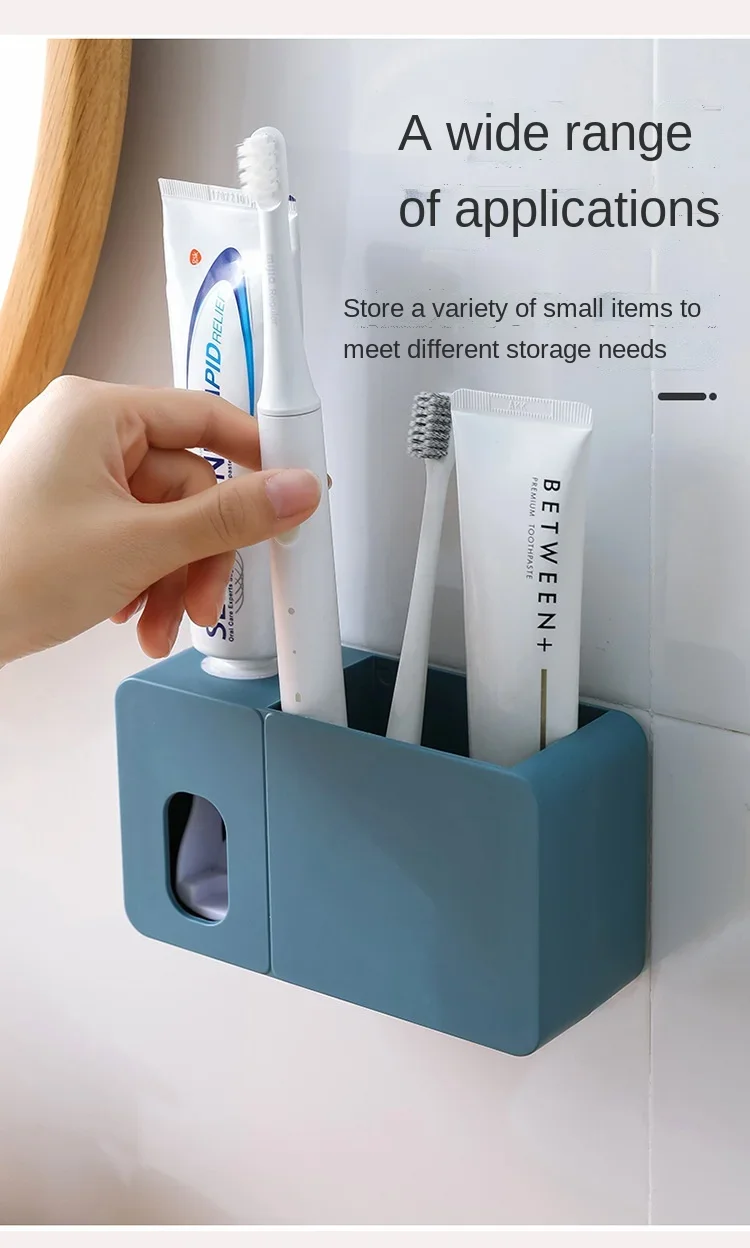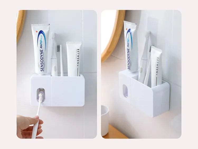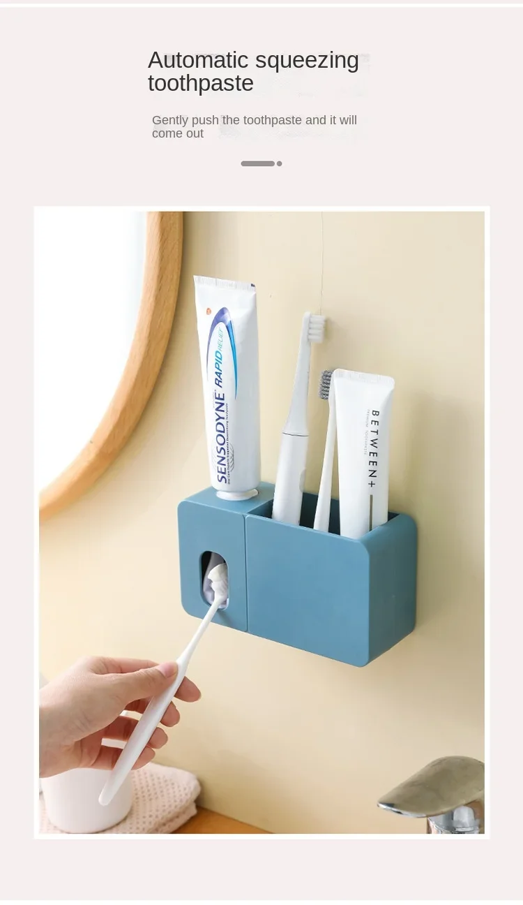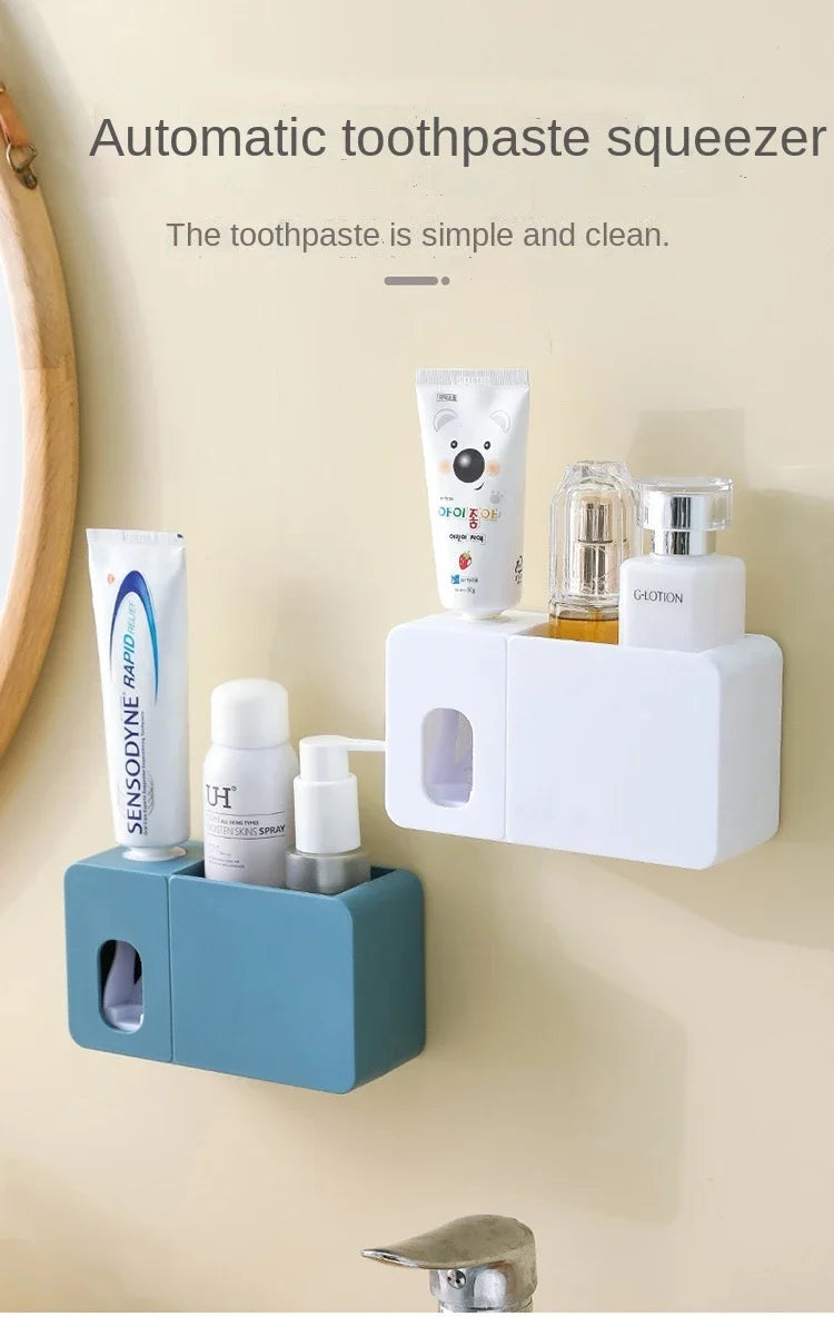 2 In 1 Toothpaste Dispenser With Toothbrush Holder Wall Mount Automatic Tooth Paste Squeezer Bath Organizer Bathroom Accessories