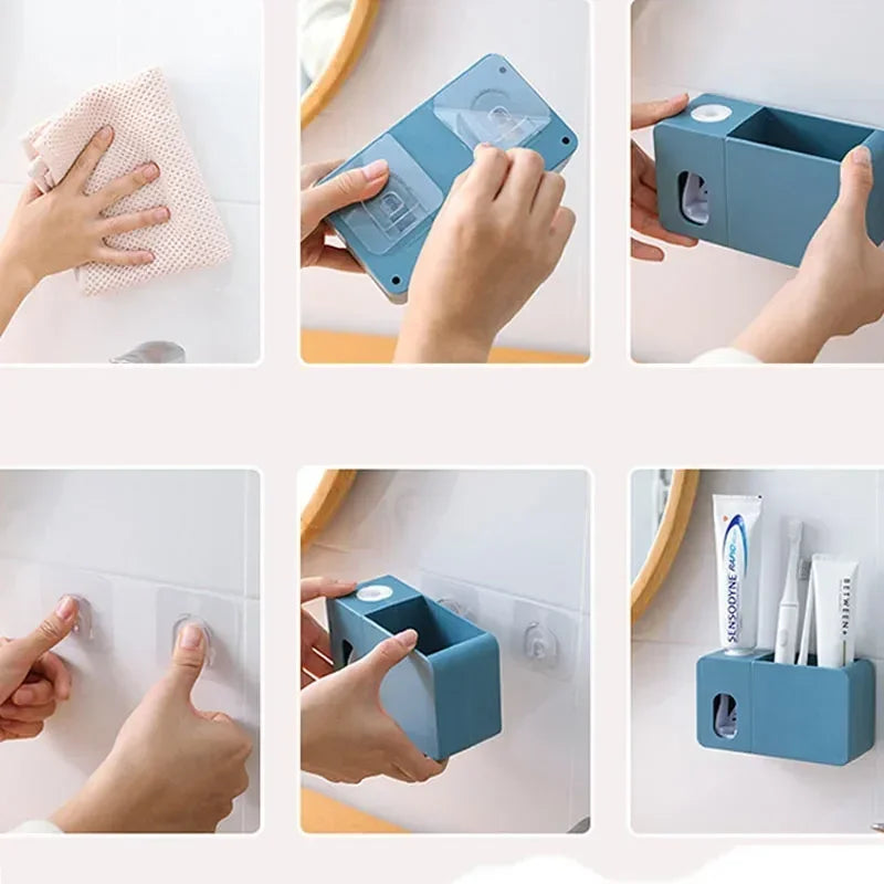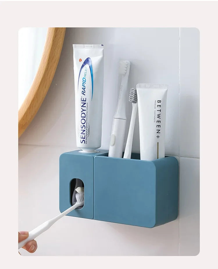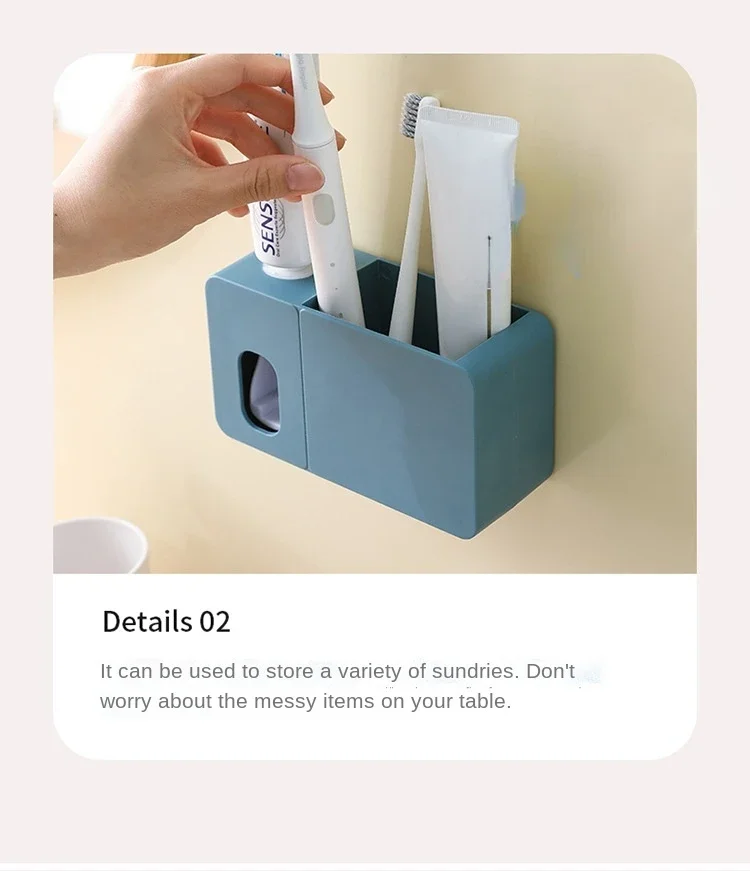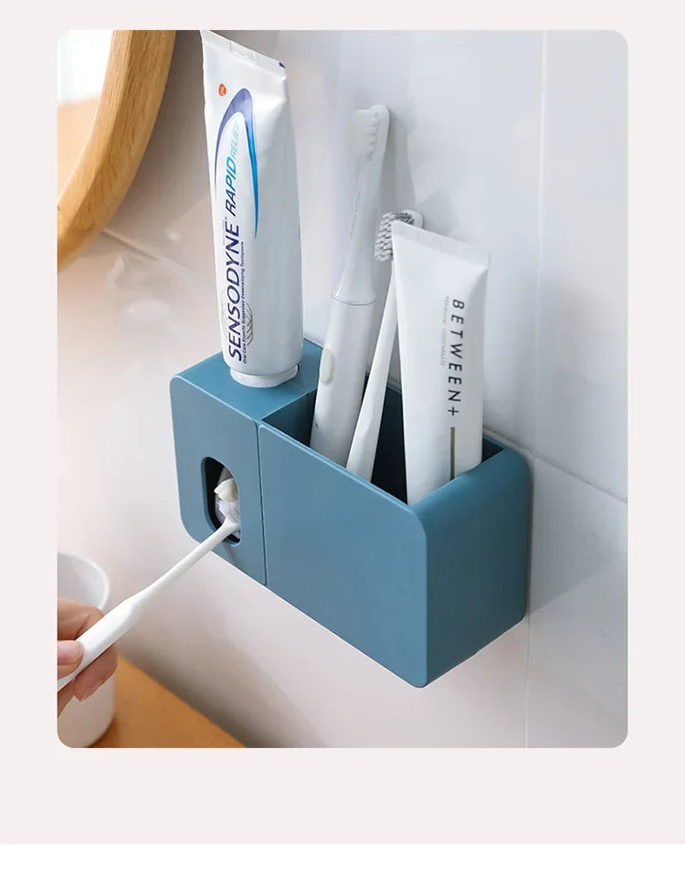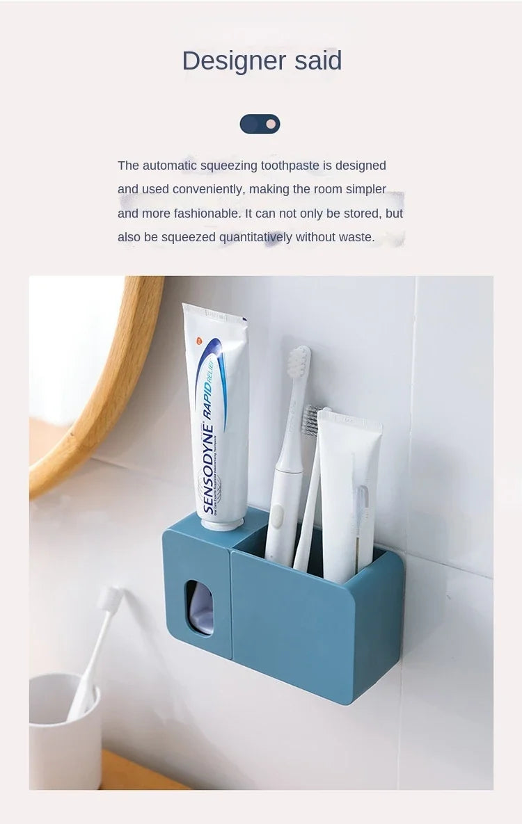 2 In 1 Toothpaste Dispenser With Toothbrush Holder Wall Mount Automatic Tooth Paste Squeezer Bath Organizer Bathroom Accessories