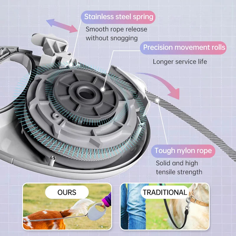 3. It's safe and reliable. You don't need to worry that the dog's leash will hurt your hand when the dog runs wildly, but it doesn't mean that your dog can stay too far away to avoid winding the leash.