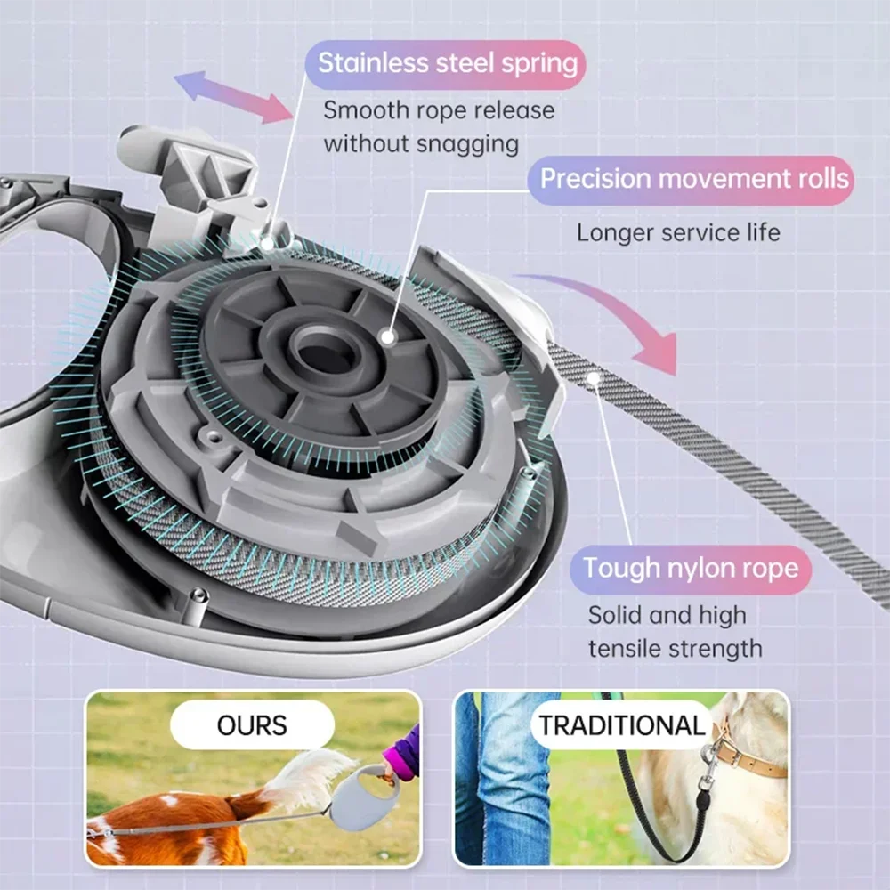 1. Retractable dog straps that extend to 9.84 feet. The rope is durable and not easy to break. Comfortable grip design in line with the comfortable grip design, long time holding hands won't be tired
