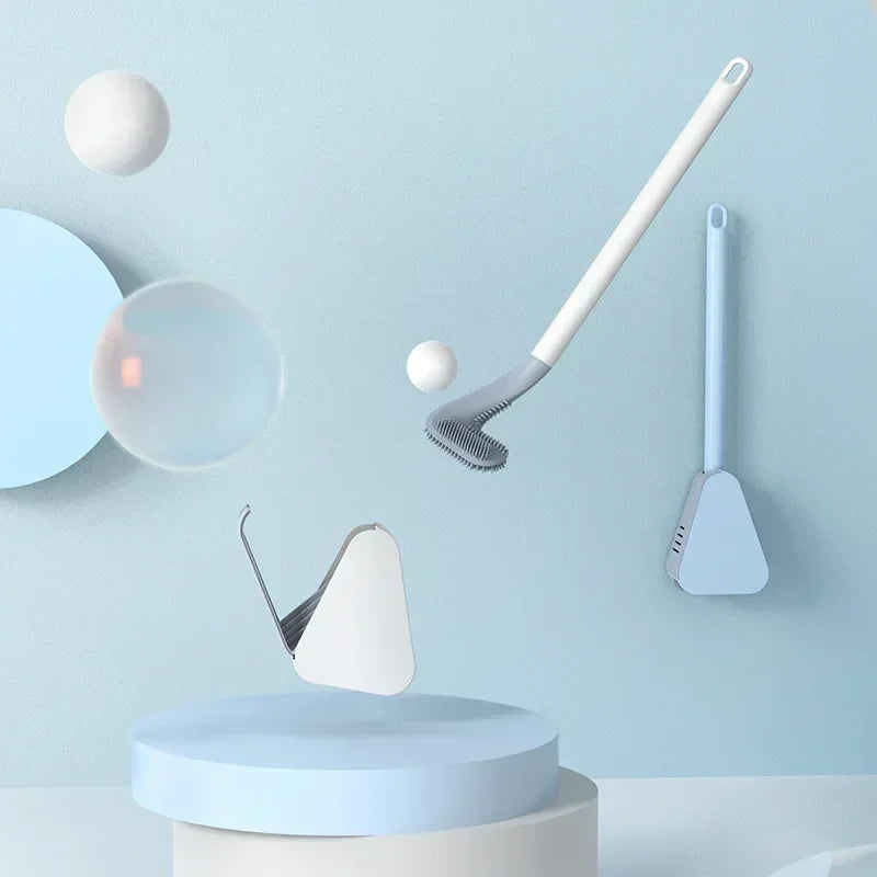 Golf Silicone Toilet Brushes With Holder Set Long Handled Toilet Cleaning Brush Black Modern Hygienic Bathroom Accessories