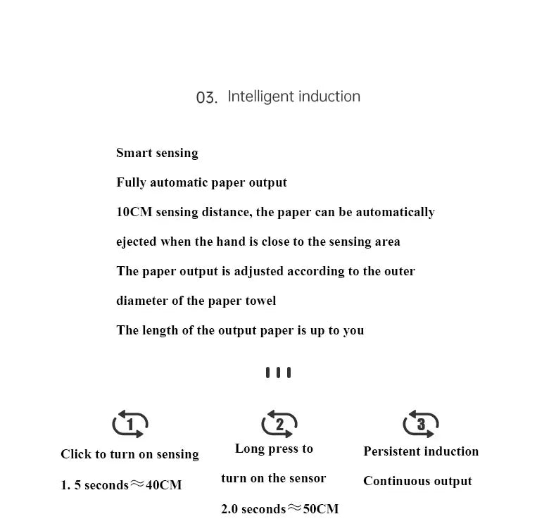 -Intelligent induction automatic paper output, 10CM induction distance, the hand can be automatically output when the hand is close to the induction area