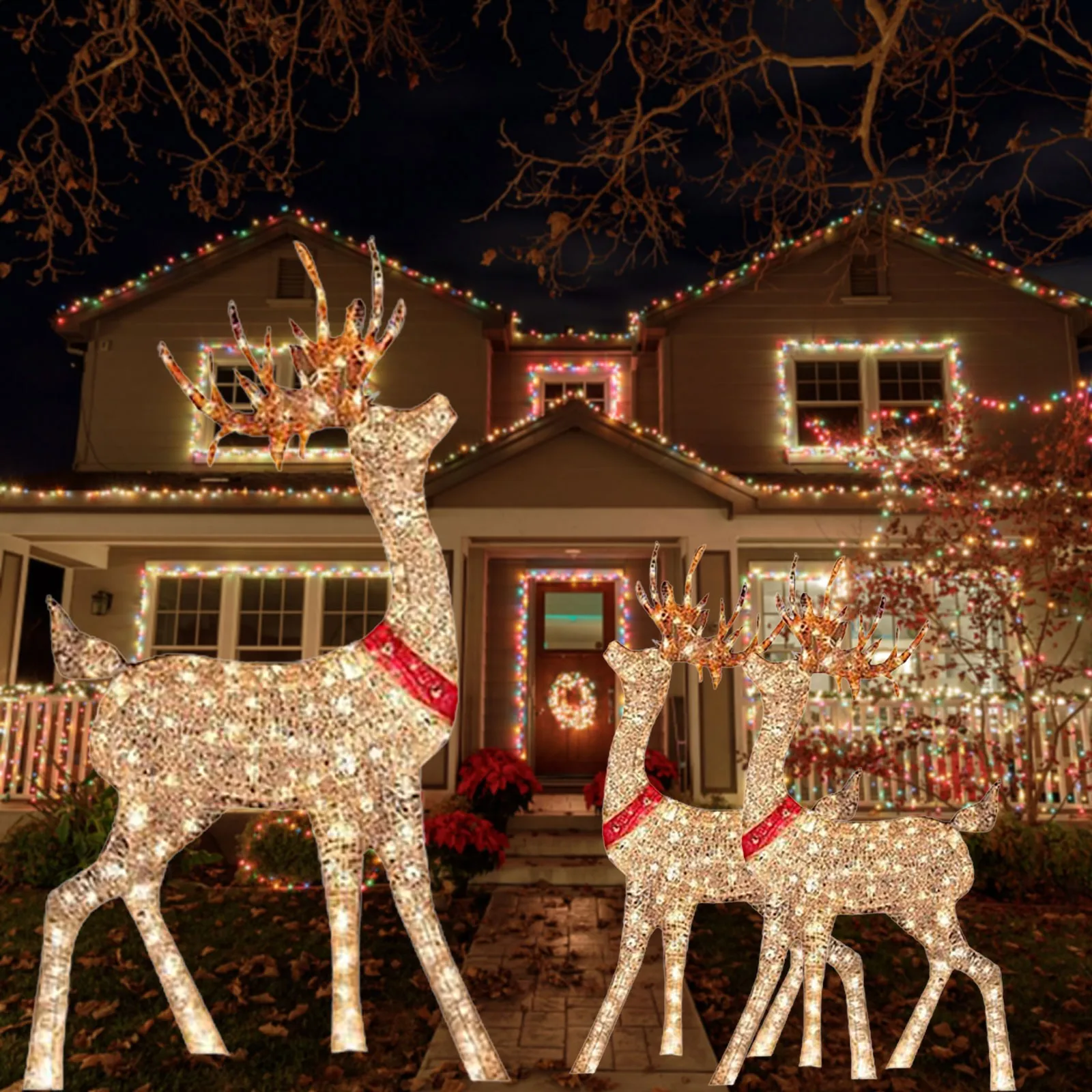 🔥[Elegant ]: Celebrate the season with a lighted snapshot of Christmas deer, carefully designed holiday , such as decorative bows.