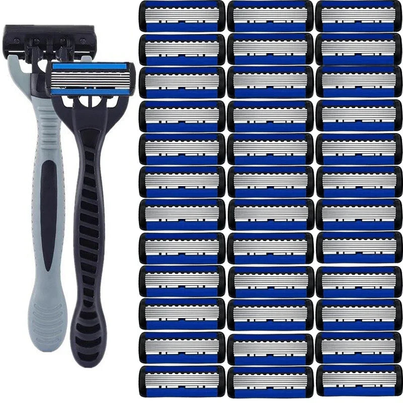 Men's manual razor safety razor 6-layer stainless steel hair removal knife, replaceable razor head, razor tools.