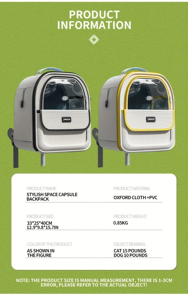 Pet Carrier Backpack, Going Out Large Cat Backpack Transparent Space Capsule Breathable Portable Bag Backpack Cat Dog Supplies