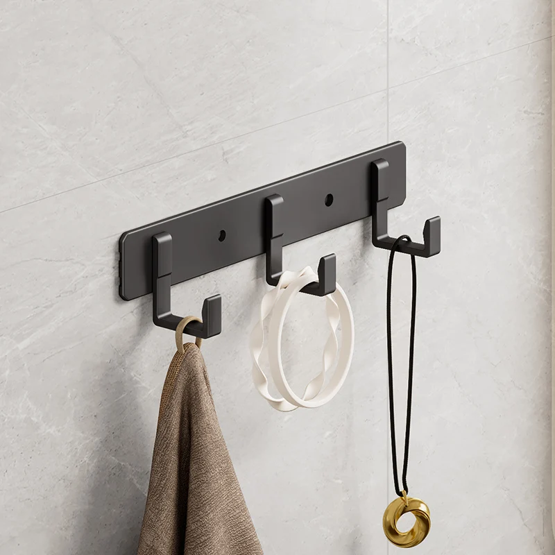 Space Aluminum Black Hook Bathroom Towel Hook Living Room Door Back Clothes Hook Simple Black Storage Hook To Save Space