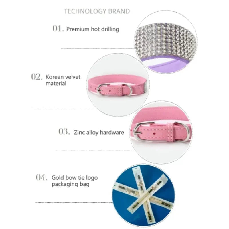 Suede Fiber Crystal Dog Collar Comfortable Glitter Rhinestone Dog Collars Zinc Alloy Buckle Collar for Small Dogs Cats