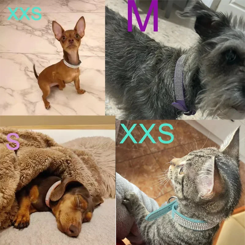 Suede Fiber Crystal Dog Collar Comfortable Glitter Rhinestone Dog Collars Zinc Alloy Buckle Collar for Small Dogs Cats