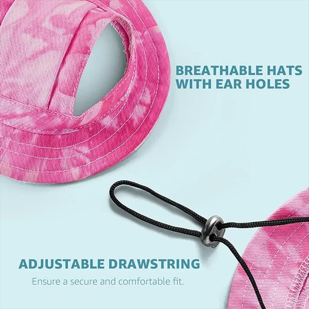 Tie-dyed Style Pets Hat with Ear Hole Dog Beach Visor Hat Sunhat for Cat Accessories Sun Cap Pet Outdoor Hat Supply for Dog Cos