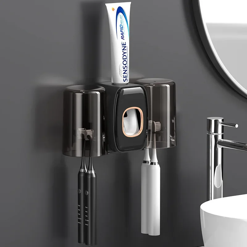 Toothbrush Holder With Cup Holder Toothpaste Dispenser Toothbrush Storage For Home Bathroom Accessories Without Drilling