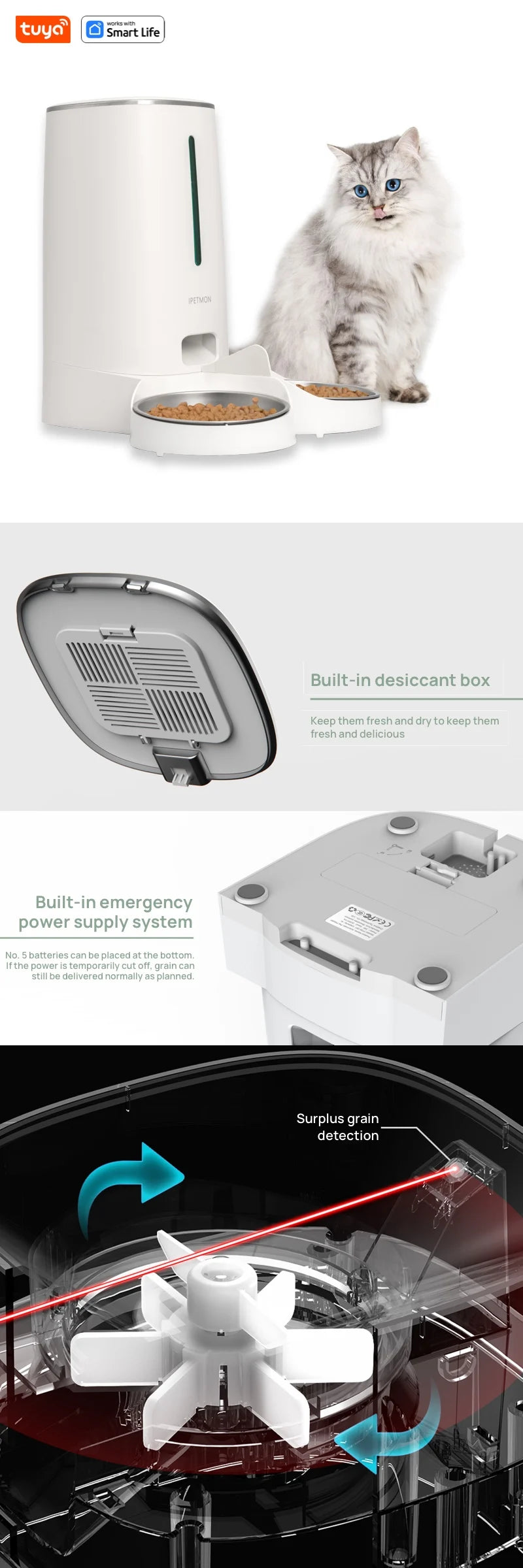Tuya Smart & Smart Life APP Control: This automatic pet feeder can be easily controlled and monitored through the Tuya Smart and Smart Life APP, allowing you to set feeding schedules, portion sizes, and track feeding history for your pets anytime, anywhere.